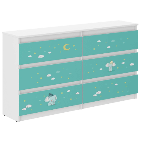1 kép Ifjúsági 6 fiókos Komód 140cm - Elefánt #fehér-türkiz