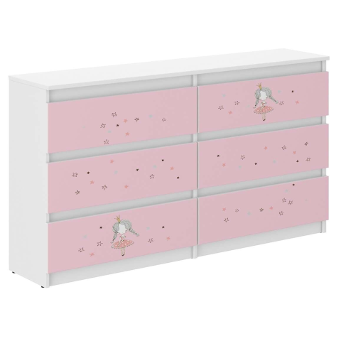 1 kép Ifjúsági 6 fiókos Komód 140cm - Hercegnő #fehér-rózsaszín