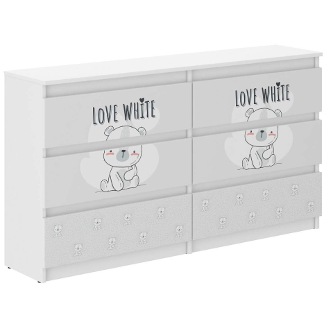 Teljes Ifjúsági komód 6 fiókos 140cm - fehér maci termékleírás