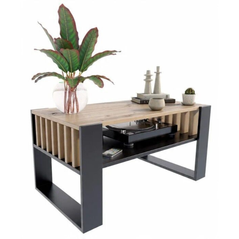 1 kép IGA dohányzóasztal, kézműves tölgy/fekete, 100x50, dohányzóasztal nappaliba, irodába, MK