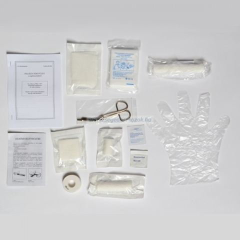 51-100 fő közötti létszámig munkahelyre, óvodába, iskolába, üzembe, rendezvényre megfelelő elsősegély doboz tartalom. Szavatossági idő: Gyártástól számított 5 év a steril kötszerek esetén, 3 év a fertőtlenítőre Az MSZ 13553 szabvány lehetővé teszi az