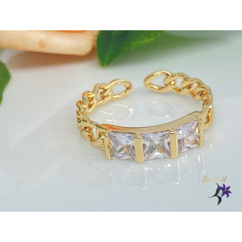 Nyitott gyűrű három fehér cikóniakővel Szin: 18K Szélesség:5mm
