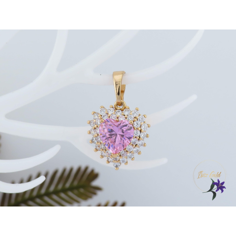 Goldfilled rózsaszín köves szíves medál fehér cirkóna kövekkel díszítve Szin: 18K Méret: 20x15mm
