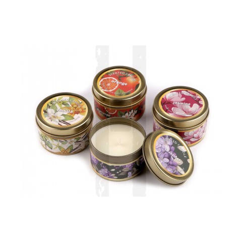 Illatgyertya  fém tokban - 60 g dekorációs kellék 1 kép