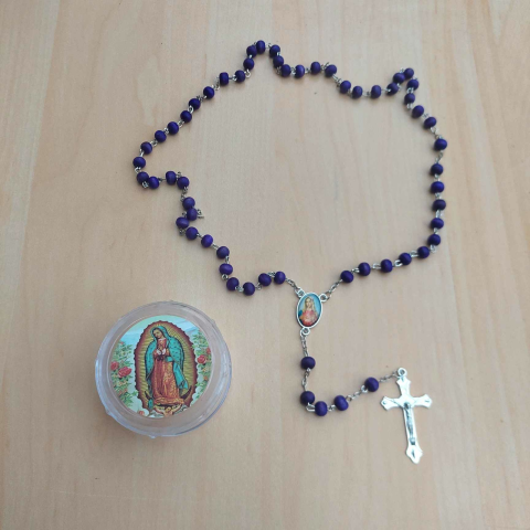 ILLATOS SZANTÁLFA Gyöngy rózsafüzér, imalánc nyaklánc dobozban, LILA
