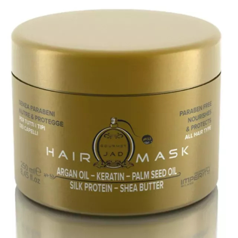 Parabén mentes ínyenc hajmaszk J'ADORE parfüm illattal. Összetételének köszönhetően alkalmas minden hajtípusra. Selyemprotein és sheavaj esszenciája kiváló hajkondícionálóként javítja a haj rugalmasságát és hidratáltságát. A keratin, argán és pálmamag ola