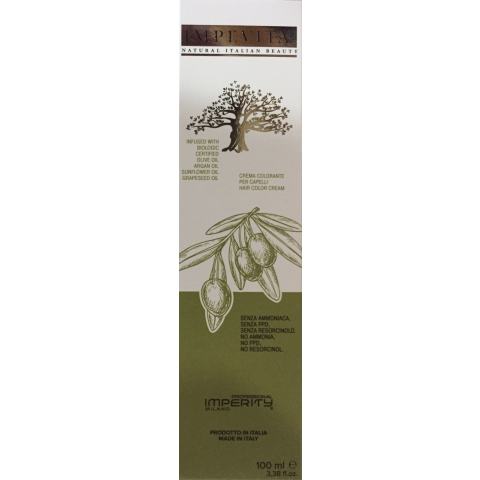 Impevita Ammónia- és PPD Mentes Krémhajfesték 100ml Az Impevita kímélő krémhajfesték garantálja az ősz hajszálak akár 100%-os fedését és a természetes hajszín négy árnyalatú felvilágosítását, A gondosan kiválasztott 4 féle bio olaj: olíva-, argán-, napraforgó-, és szőlőmagolaj egyedi kombinációja biztosítja a természet által nyújtott ápoló, védő hatást a haj szá