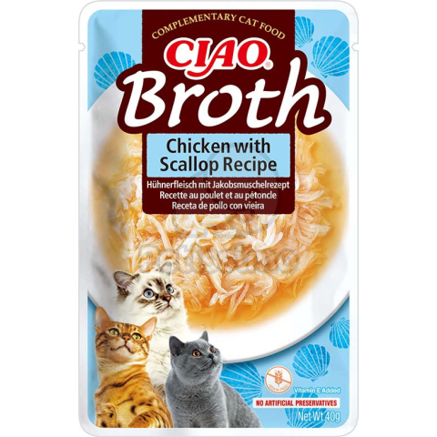 Teljes Inaba Cat Ciao Broth nedves macskaeledel - csirke & fésűkagyló 40 g termékleírás