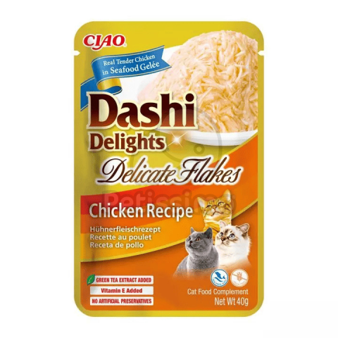 Inaba Dashi Delights Delicate Flakes nedves macskaeledel - csirke 40 g macskaeledel termékleírás