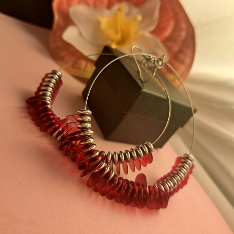 Egy látványos fülbevaló öltöztet.Mutatós és kidolgozott ékszer.Teljes hossz: 5 cm