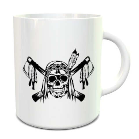 Indián koponyás bögre, halálfejes bögre. Ajándék az indiánok rajongójának, aki imádja az indiános könyveket, filmeket. Sokféle színű bögre, tartós nyomattal, melynek a színét is Te döntheted el. Egyedi nyomtatású bögréink kiváló választások személyes a