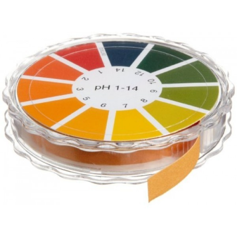 Univerzális indikátor papír 1-14 pH-ig mér, a tekercs hátoldalán színskálán lehet beazonosítani a mért ph értéket, 5m hosszú a papír, melyből tetszőleges mennyiséget lehet letépni... Univerzális indikátor papír 1-14 pH-ig mér, a tekercs hátoldalán szín