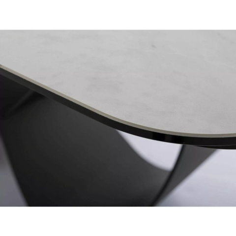 Modern, bővíthető étkezőasztal egyedi végtelen alakú lábszerkezettel, amely ötvözi a Nature Cloud kerámia és edzett üveg felületet a matt fehér és fekete színekkel. Elegáns megjelenésével és praktikus kialakításával akár 12 fő kényelmes étkezését is b...