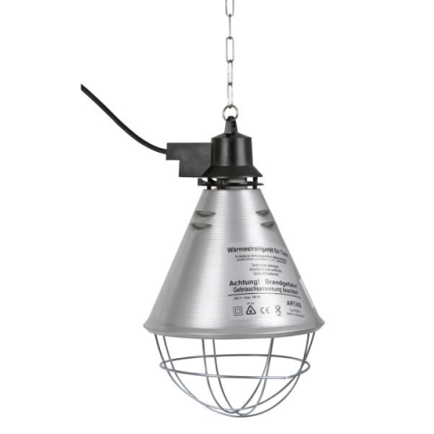 a kis- és haszonállatok egészséges növekedéséhez és gyógyulásához fenntartja a testhőmérsékletet újszülött és beteg állatoknál alumínium esernyővel ø 21 cm és védőkosárral A szellőzőnyílások biztosítják a jó levegőkeringést és hőelosztást, valamint a l