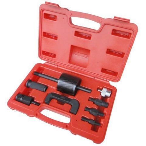 Injektor kihúzó készlet, csúszókalapáccsal. Extra rövid kivitel. COMMON RAIL rendszerekhez MERCEDES-BENZ CDI motorokhoz Anyaga: S45C acél Teljes hossz 350mm Csúszókalapács súlya 1,75kg Adapterek: M17x1.0 M27x1.0 M12x1.75 G4