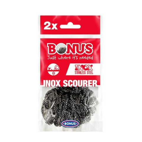 Inox fémsúroló, spirál, 2 db, BONUS - KHT774 - Törlőkendők és szivacsok - A BONUS INOX spirál fémdörzsi különlegessége, hogy gombolyag kialakítású rozsdamentes acélból készült. Extra hatékony, rugalmasságának és finom acélszálainak köszönhetően kíméletese