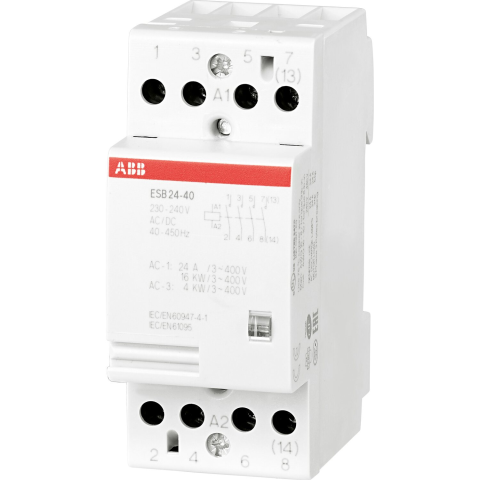 Az installációs mágneskapcsoló elektromos fűtőberendezések, szivattyúk, vízmelegítők, valamint szellőztető- és világítóberendezések kapcsolására szolgál. 3 fázisú terhelést vezérel 25 A-ig. A beépített tekercsáramkörrel felszerelt, elosztó tartozék AC és DC vezérlőfeszültséggel működik. Az installációs mágneskapcsoló összesen négy pólussal rendelkezik. Működése búgófeszültség mentes és csendes.