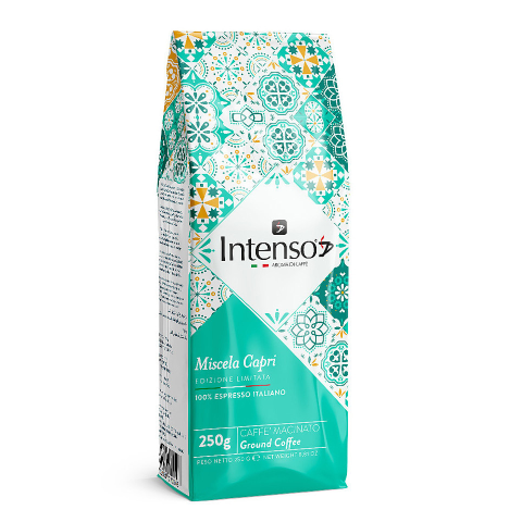 Intenso Capri karakteres, klasszikus lassú pörköléssel készült, testes, krémes és sűrű textúrájú, közepesen erős pörkölésű olasz őrölt kávé keverék az indiai kávék különleges aromáival a nápolyi Intenso Aroma di Caffé cégt