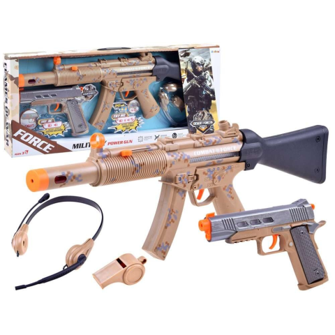 Tedd fel kérdésed a(z) Interakítv katonai szett: puska+ pisztoly + fejhallgató + síp termékről!