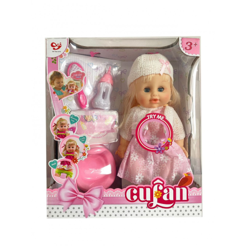 Interaktív beszélő és pisilő játék hajas baba – kiegészítőkkel