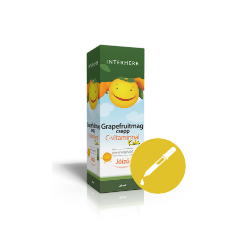 Az Interherb Grapefruitmag csepp KIDS C-vitaminnal alkoholmentes, jóízű, pipettás kiszerelésű étrend-kiegészítő 3 éves kortól. Napi adagonként 18 mg C-vitamint és 4,8 mg citrus bioflavonoidot tartalmaz. A C-vitamin hozzájárul az immunrendszer normál működ