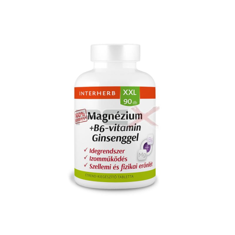 Interherb XXL Magnézium 100% Szerves + B6 + Ginseng tabletta az idegrendszer védelmére!