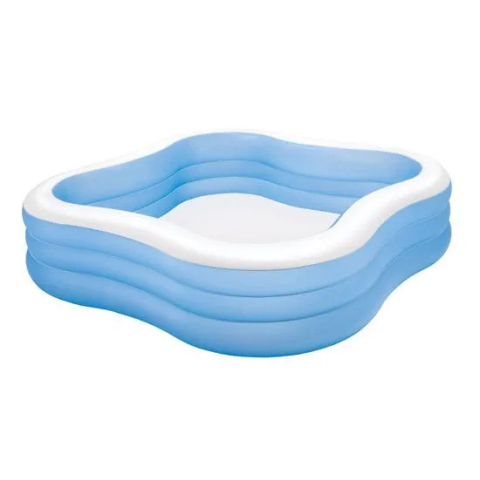 Uszoda az egész családnak. 229 x 229 x 56 cm méretű, 2 légkamrával, nagy szeleppel a gyors felfújáshoz és leeresztéshez, leeresztő szeleppel, széles falakkal és 0,32 mm-es anyagvastagsággal a medence több személy számára is elegendő helyet kínál. 33 cm-es