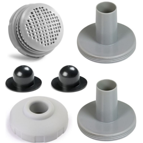 INTEX Jet csatlakozó készlet, falátvezetők szett, befúvó és szívó elem Ez a készlet egy szívó- és nyomószűrőből áll, amely biztosítja az Intex cső alakú medence szűrőrendszerének egyszerű összeszerelését . Fekete dugós kupak is mellékelve van, ha szeretn