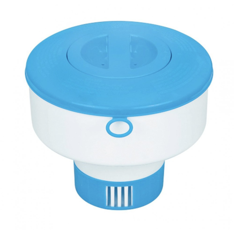 Intex úszó vegyszer adagoló a normál, 7,6 cm-es tablettákhoz. -Akár 1 (7,6 cm) klórt, ill bróm tablettákhoz. -Tartós, nem korrozív anyagból készült. (polipropilén) -Állítható az oldódási idő a szabályzó segítségével -Elcsavarható sapka. -Alkalmas minde I