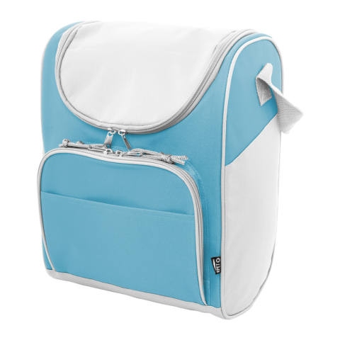 RPET hűtőtáska alumínium béléssel. 2 cipzáras rekesszel, kis elülső zsebbel és állítható vállpánttal. 600D RPET poliészter, megkülönböztető RPET címkével.