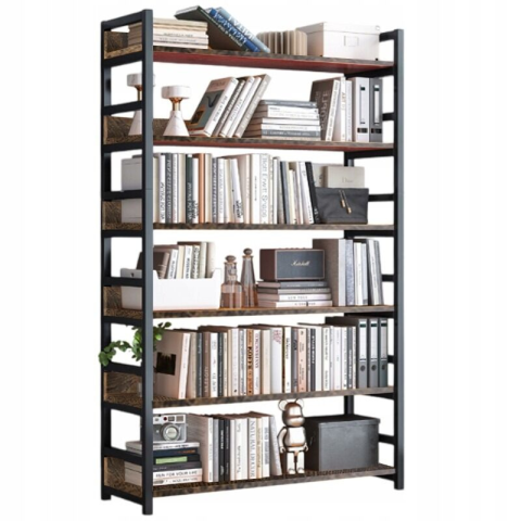 1 kép IPARI RUSZTIKUS ÁLLÓ KÖNYVESPOLC 6 POLCOS KÖNYVES LÉTRA 174 CM