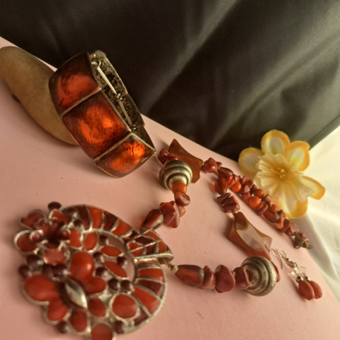 1 kép Iparművész Korall és tűzzománc szett, nagy és egyedi