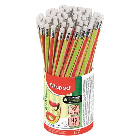 Írástanuló grafitceruza radírral, ceruzatartó, HB, háromszögletű, MAPED "Kidy Learn", 72 darab