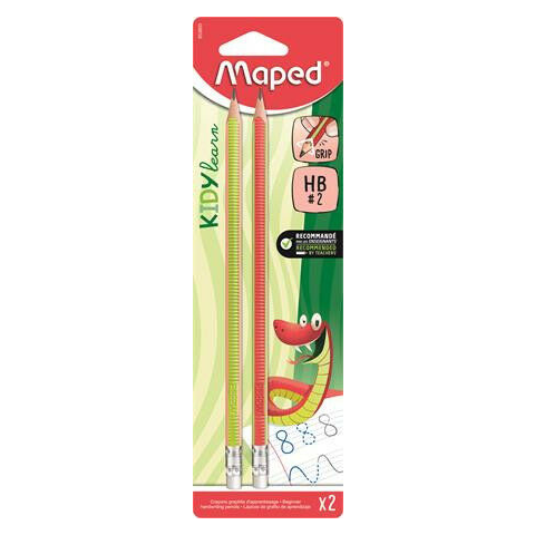 Írástanuló grafitceruza radírral, HB, háromszögletű, MAPED Kidy Learn, 2 darab A Kidy learn termékcsaládot kifejezetten úgy tervezték, hogy segítsen a gyerekeknek megtanulni írni, anélkül, hogy kényszerítené őket! A kígyó bőrére emlékeztető ceruzatest