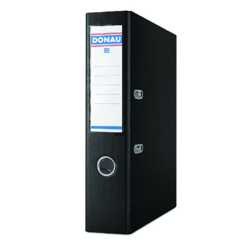 Iratrendező DONAU Szivárvány A/4 75 mm PP/karton fekete Elegáns emelőkaros iratrendező dokumentumok tárolásához és védelméhez. A tartós kartonpapír vékony, környezetbarát, textil mintás fóliával bevont, amely védelmet nyújt a nedvesség és a kopás ellen