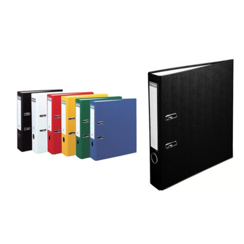 Iratrendező Exacompta Economy A/4 50 mm gerinccel fekete Gerincméret: 50 mm Szín: fekete emelőkaros iratrendező kívül PP-, belül papírborítással fém élvédő sínnel cserélhető gerinccímke