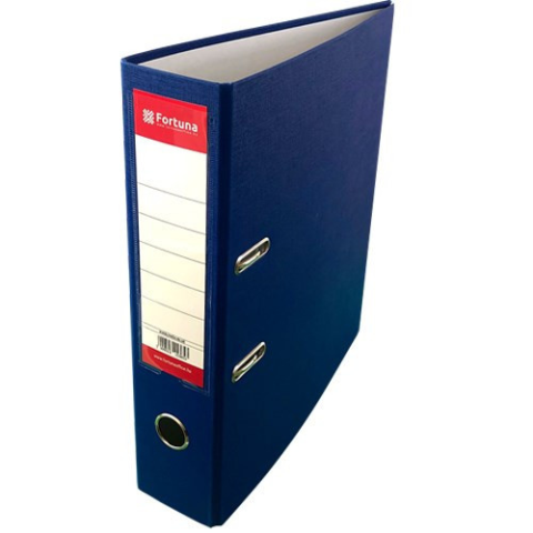 Iratrendező FORTUNA A/4 50 mm királykék Közkedvelt iratrendező. Kívül műanyag, belül papírborítású. 5 cm-es gerinc. A gerincre hegesztett címketaró 195 mm hosszú. A cserélhető címke egyszínnyomott. Kihúzógyűrűvel ellátva. Az iratrendező záródását