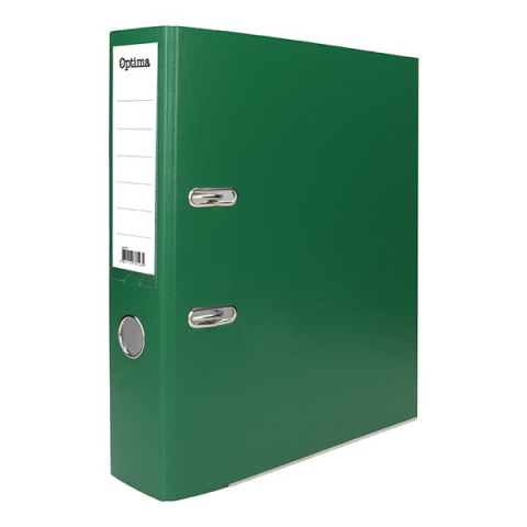 Iratrendező OPTIMA A/4 75 mm élvédő sínnel zöld OPTIMA iratrendező Méret: A/4 Gerincvastagság: 75mm Szín: zöld