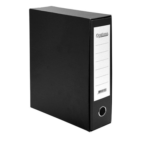 Iratrendező tokos OPTIMA A/4 75 mm fekete Egyszínű, matt papír borítású tokos iratrendező. Alapanyag: 1050 gr-os karton. 75 mm-es gerincvastagság. Ragasztott gerinccímke. Kihúzólyuk.