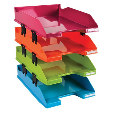 Irattálca műanyag Exacompta Combo Midi A/4+ 4 emeletes vegyes színek 4 db-os irattálca szett A/4 dokumentumok tárolására megnövelt tárolási kapacitás a távtartóknak köszönhetően