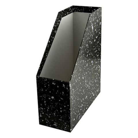 Irattartó papucs 90 mm karton márvány mintás fekete Kívül egyszínű, fóliázott, belül fehér papír borítású, kemény, merev falú, környezetbarát kartonlemezből készült irattartó papucs, 90 mm-es gerincszélességgel. Formatervezett, modern stílusú, felirato