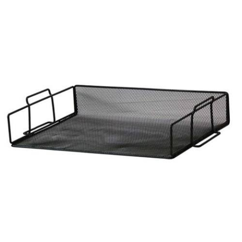 Fémhálós, fekete, 1 szintes irattartó tálca. Irodai és otthoni használatra egyaránt alkalmas, iratok tárolására és rendszerezésére. Szétszerelt állapotban kapható, könnyedén összeépíthető. Mérete: szélesség:34cm, mélység 24cm, magasság 7cm