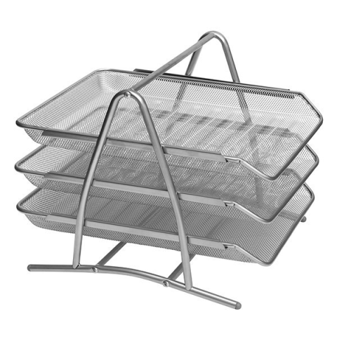 Irattartó tálca fémhálós 3 szintes ezüst Fémhálós kivitelű háromszintes irattartó tálca, A/4 -es méretű iratok tárolására. Színek: fekete, ezüst.