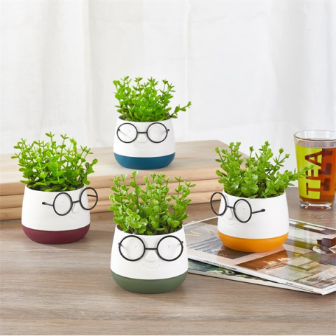 1 kép    IRIS E5720 szemüveges fej dekoráció művirággal kétszínű cserépben 9x14cm