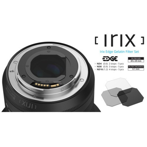 Irix Edge Gel ND szűrőkészlet 29mm x 29mm Az Irix Edge Gel ND szűrőkészlet 29 mm x 29 mm egy tizenöt gélszűrőből álló szűrőkészlet, három sűrűségi tényezővel: 0,6 (ND4), 0,9 (ND8) és 1,2 (ND16). Tizenöt semleges sűrűségű szűrő készlete ND4, ND8 és ND16 s