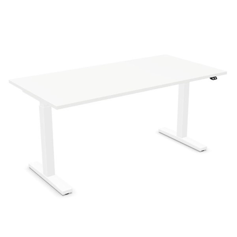 Íróasztal NOWYSTYL elektromosan állítható magasságú 1600x800 mm fehér T-lábas fehér Téglalap alakú íróasztal, 1600x800 mm. Fehér színű dekor felület. 25 mm vastag, fehér színű melaminált dekor felületű asztallap, 2 mm vastag ABS élzárás. Kétszeg
