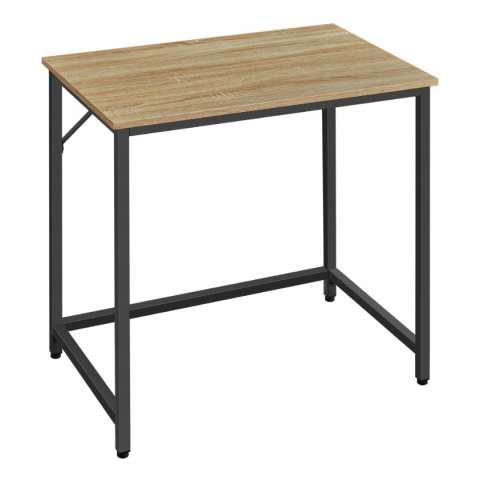 Az asztal stabil fekete fém vázzal rendelkezik állítható lábakkal, amelyek könnyen kiegyenlítik a padló apró egyenetlenségeit. A sonoma tölgy természetes dekorációjú asztallap strapab
