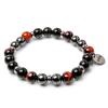 RUGALMAS KARKÖTŐ, a mérete választható.Az ékszer ásványai és tartozékai:– 8 mm-es vörösbarna tigrisszem ásványok– 8 mm-es ónix ásványok– Ezüst színű fémdíszek– M.King márkajelzésű nemesacél logóbiléta.– Technika: