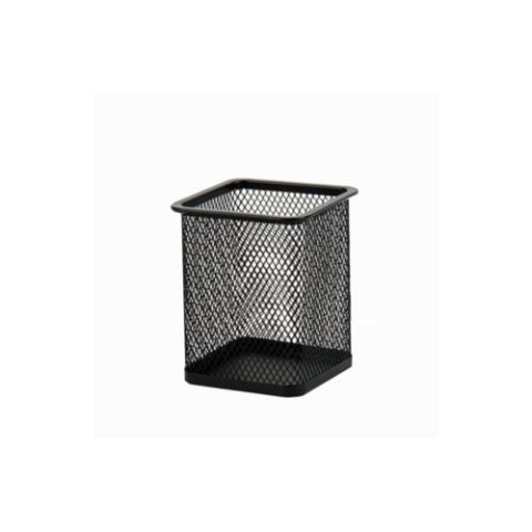 Fémhálós, fekete, szögletes írószertartó pohár.