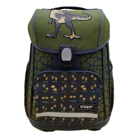 Iskolatáska STREET kompakt Dino - Kényelmesen kialakított háttámla. - Rendkívül könnyű. - Többrétegű kemény alsó. - Széles és kemény vállpántok. - Fényvisszaverő részek a pántokon és a táska elején. - Alkalmas az általános iskola első három osztál